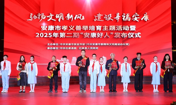 本次活動(dòng)以“弘揚(yáng)文明新風(fēng) 建設(shè)幸福安康”為主題,由市委宣傳部主辦、石泉縣委和縣政府承辦,旨在深入學(xué)習(xí)貫徹黨的二十屆四中全會(huì)精神,扎實(shí)推進(jìn)崇德向上幸福安康建設(shè);顒(dòng)現(xiàn)場(chǎng),通過(guò)播放典型人物短片、現(xiàn)場(chǎng)互動(dòng)訪談等形式,生動(dòng)再現(xiàn)了陳登發(fā)、高虎、黃壽琴等好人代表的感人事跡。市級(jí)領(lǐng)導(dǎo)及“中國(guó)好人”“陜西好人”等先進(jìn)典型代表為28名新入選的“安康好人”頒發(fā)紀(jì)念證書;顒(dòng)現(xiàn)場(chǎng)同時(shí)發(fā)布了2025年安康市“新時(shí)代好少年”名單,24名青少年獲得殊榮。