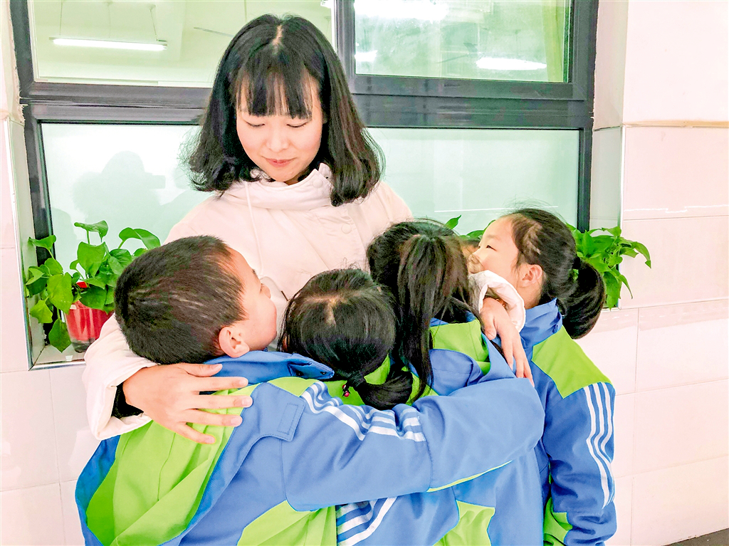 在楊廣慧班上有個令人頭疼的小男孩,父母拿他毫無辦法。但楊老師發(fā)現(xiàn)他的優(yōu)點:反應(yīng)快、責任心強、愛表現(xiàn)。為了鼓勵孩子,讓孩子發(fā)揮自己的優(yōu)勢,楊廣慧主動給他安排班級工作,慢慢地,他成了老師的小幫手。家長來到學(xué)校時激動地對楊老師說:“孩子真的很喜歡你,你讓他當小組長,他回去高興了好久。”楊廣慧說:“孩子們的世界最是單純,只要用心對待他們,他們一定會愛著你。”