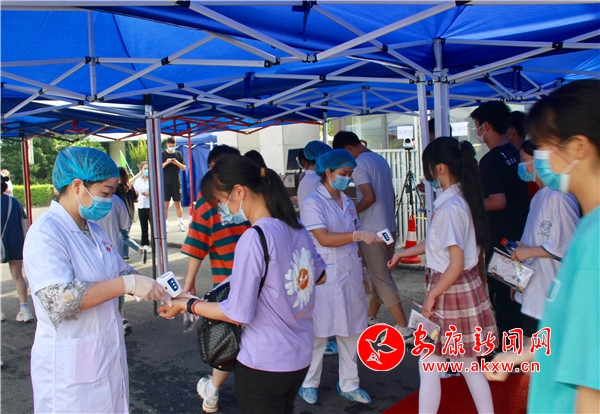相較于往年,今年的考生入場(chǎng)更加嚴(yán)格,紅外線測(cè)溫儀顯示屏出現(xiàn)一串串的數(shù)字,工作人員認(rèn)真細(xì)致地盯著每個(gè)數(shù)字。工作人員們按照統(tǒng)一部署和安全要求,遵循“健康第一”、“安全第一”的原則,加強(qiáng)考試安全保障組織和管理,扎實(shí)細(xì)致做好考前各項(xiàng)準(zhǔn)備工作,努力為考生們的健康安全保駕護(hù)航。