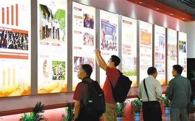 展覽由中共陜西省委宣傳部主辦,中共延安市委、陜西日報社和陜西歷史博物館承辦。展覽分為學(xué)習(xí)篇和追夢篇兩個部分,圍繞學(xué)習(xí)貫徹習(xí)近平總書記系列重要講話精神和治國理政新理念新思想新戰(zhàn)略,全面展示十八大以來黨中央統(tǒng)籌推進(jìn)“五位一體”總體布局和協(xié)調(diào)推進(jìn)“四個全面”戰(zhàn)略布局的生動實踐、黨和國家事業(yè)發(fā)展的輝煌成就;集中展示我省全面深入貫徹習(xí)近平總書記系列重要講話、特別是來陜視察重要講話精神,落實“五個扎實”要求,奮力追趕超越的顯著成效和未來五年發(fā)展的任務(wù)舉措、目標(biāo)藍(lán)圖。圖為市民觀展。