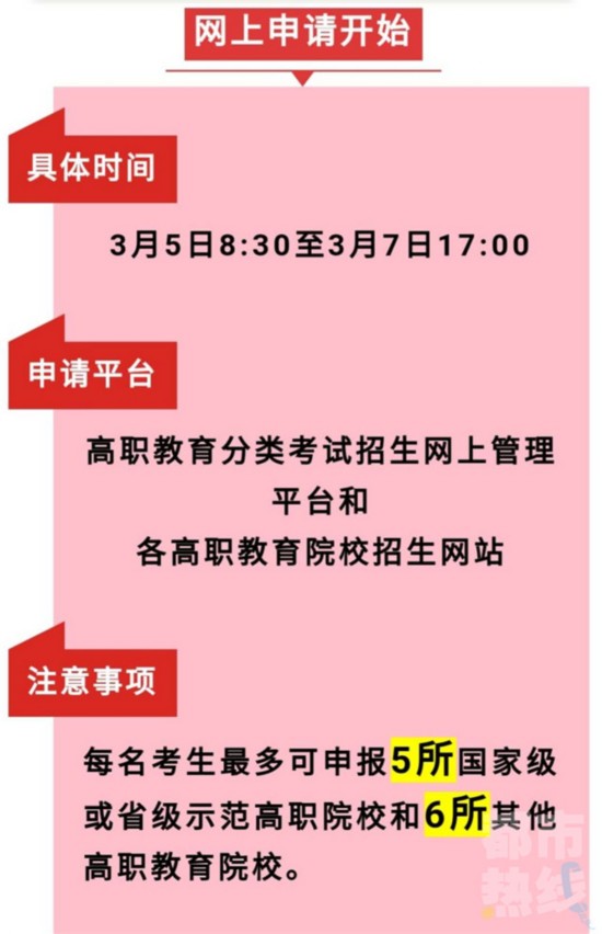 高職分類考試招生是陜西省高考統(tǒng)考外,另外一種高考招生模式。最大的特點就是考生完成測試考核后,不用參加6月7號8號兩天的高考統(tǒng)考,就能獲得我省高職院校的錄取資格。根據日程安排,3月5日至7日,已經報名參加我省高考的統(tǒng)考生和職高技校中專生,都可以在網上提出入學申請。