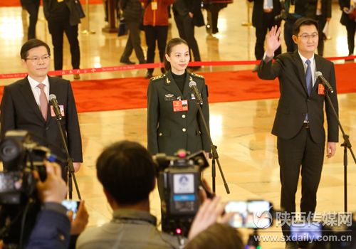 當?shù)谝唤M全國人大代表騰訊計算機系統(tǒng)有限公司董事會主席馬化騰、中國人民解放軍航天員大隊副師職航天員王亞平和浙江省杭州市委副書記、市長徐立毅站在通道外候場時,現(xiàn)場的手機、相機、攝像機隨即開始聚焦。