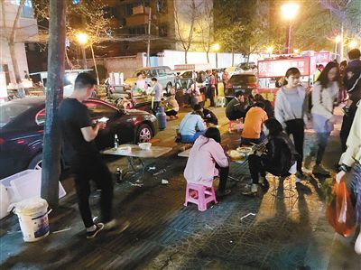 在一家小吃攤買完飯的王女士告訴記者,她是陜北人,因為在東郊打工所以和朋友一起租住在學府首座。這里有學府首座南沙社區(qū),北面有蘭蒂斯城小區(qū),南面還有一個南沙世紀花園。有這么多大型住宅區(qū),流動攤販也就有了市場!懊刻煜挛缦掳鄾]什么時間,也懶得做飯,經(jīng)常在門口的小攤點對付一頓。這些攤販大部分都是以前沙坡村的村民,能在流動攤販點吃飯的也都是一些年輕的上班族和外來租住人員,本來衛(wèi)生條件就差,很多人也不注意,垃圾亂扔。”王女士說。
