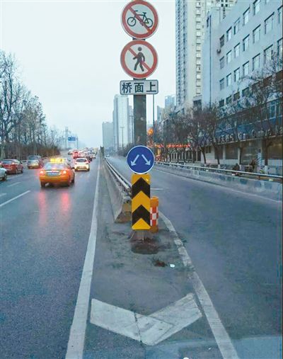 南二環(huán)太白立交東側(cè)上橋口增設(shè)道路線形變化提示標(biāo)志 (西安交警供圖)