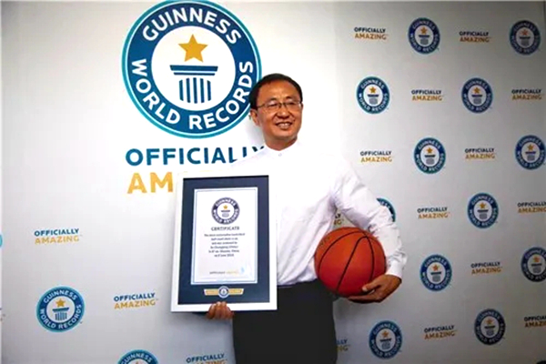 (徐長清2016年打破半場超遠(yuǎn)投籃六連中吉尼斯世界紀(jì)錄時領(lǐng)獎留影 攝影 姚建宇)