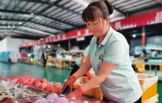 在頂端果業(yè)的生產(chǎn)車間里,一個個蘋果通過選果線,經(jīng)過測外觀、測糖酸比、測霉心等環(huán)節(jié)的智能篩選,“淘汰”不符合標準的蘋果,然后按照不同規(guī)格和需求,分流到各個渠道進行包裝和對外銷售。