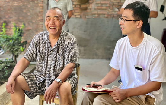 退休教師方長奇(左)接受人民網(wǎng)大道康莊采訪組采訪。人民網(wǎng)趙岍攝