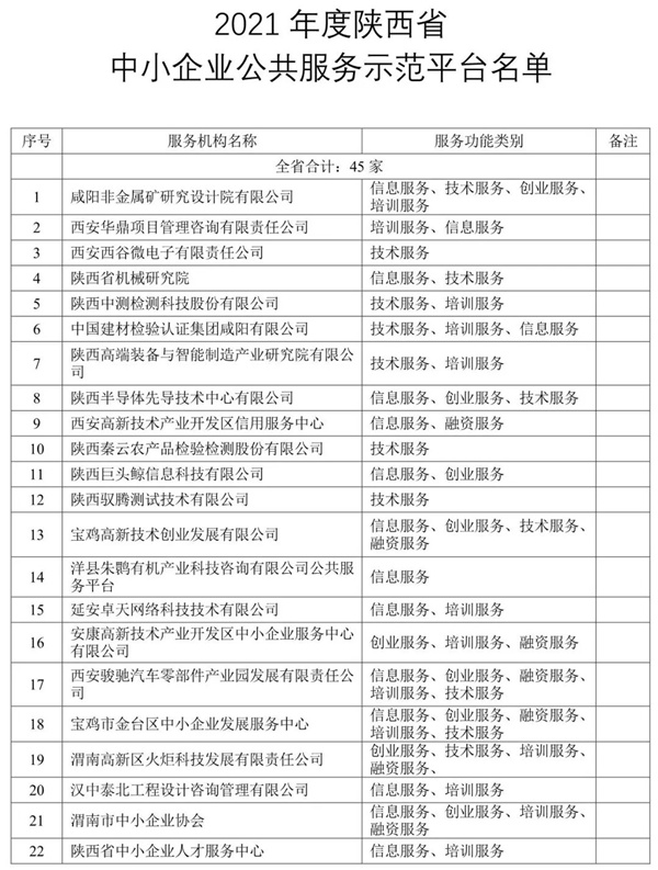 附件:2021年度陜西省中小企業(yè)公共服務(wù)示范平臺(tái)名單QEd安康新聞網(wǎng)