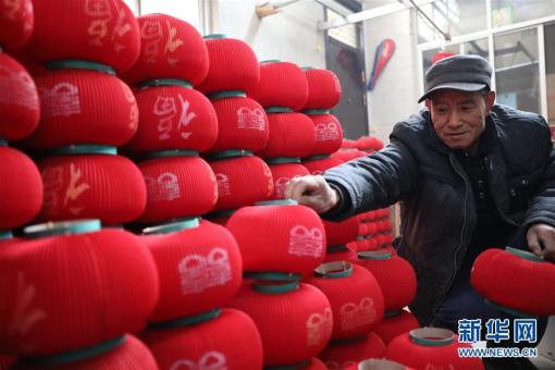 1月9日,66歲的陜西省鳳翔縣彪角鎮(zhèn)三岔村村民劉西德擺放做好的燈籠。 春節(jié)臨近,人們忙著制作節(jié)慶用品、手工藝品等,喜迎新春佳節(jié)。 新華社記者 都紅剛 攝……