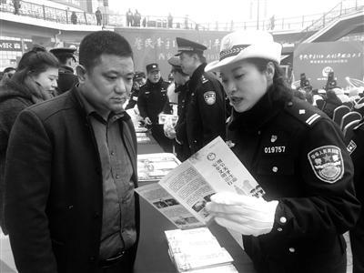 民警上街講解“110”報警相關知識 昨天是全國第33個“110宣傳日”,西安警方舉行主題宣傳活動,引來不少市民圍觀。 “師傅,現(xiàn)在假定你回到家后發(fā)現(xiàn)家里進來小……