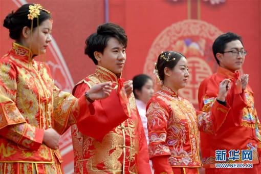 1月3日,新人們?cè)诨槎Y現(xiàn)常 當(dāng)日,中建三局西北公司的5對(duì)員工在西安曲江創(chuàng)意谷項(xiàng)目工地上舉行集體婚禮。據(jù)了解,大部分新人參與了該項(xiàng)目的建設(shè),他們選擇用這種……