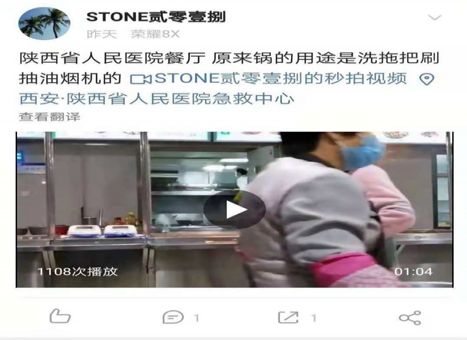 西部網(wǎng)訊(記者 楊勇飛)11月5日下午,網(wǎng)友“STONE貳零壹捌”在陜西省人民醫(yī)院餐廳就餐時看到醫(yī)院餐廳清潔人員用灶臺上的鍋清洗拖把,由于當(dāng)時餐廳還有人在餐廳……