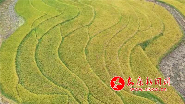 從空中俯瞰,在漫漫云海的覆蓋下,綿延數(shù)十公里的古梯田,層層環(huán)抱著山脊,從山腳盤繞到山頂,其線條如行云流水,其規(guī)模磅礴壯觀,與青山相互交融,盡顯自然和諧。走在田間的小道上,稻香撲面而來(lái),粒粒飽滿的稻穗隨風(fēng)搖曳,村民們正搶抓晴好天氣,忙著收割、打粒、裝袋。放眼望去,金黃的稻田、翠綠的山巒和勤勞的村民勾勒出一幅優(yōu)美的豐收畫卷。