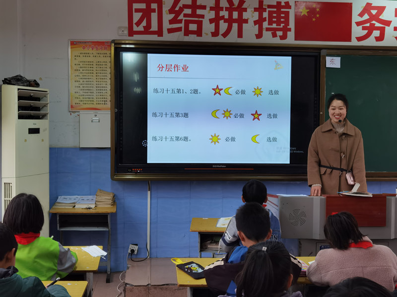作為“雙減”的重要工作之一,漢陰縣各學(xué)校按照《關(guān)于進一步加強學(xué)校作業(yè)管理的通知》要求,以加強作業(yè)管理為抓手,健全作業(yè)管理機制,分類明確作業(yè)總量,提高作業(yè)設(shè)計質(zhì)量。按照備課組設(shè)計、學(xué)科組審核、年級組統(tǒng)籌、班集體公示的流程,審核公示學(xué)生作業(yè),確保各年級作業(yè)數(shù)量和質(zhì)量符合“雙減”要求。各中小學(xué)根據(jù)學(xué)生實際,實施學(xué)生分層、作業(yè)分層和評價分層的“三步三環(huán)”作業(yè)分層管理辦法。按照三個不同層級的學(xué)生,科學(xué)設(shè)計與其能力范圍相符的基礎(chǔ)鞏固題、能力提升題、思維拓展題,教師依據(jù)學(xué)生層次和作業(yè)完成情況綜合考量,進行不同層次的激勵性評價。作業(yè)分層管理,解決了學(xué)困生“吃得了”,優(yōu)等生“吃得飽”的問題,讓每個學(xué)生在學(xué)習(xí)過程中獲得成就感,從而變得更自信、更陽光,并以此促進教師的專業(yè)成長和職業(yè)幸福感。