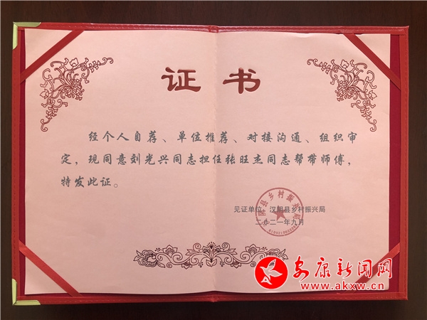 9月初,漢陰鄉(xiāng)村振興工作領(lǐng)導(dǎo)小組要求明確全縣派駐的第一書記和駐村隊員實行“師傅幫帶”,接到通知后我心里竊喜,打定主意一定要“拜”軍壩村黨總支劉光興同志為師傅。然而在我走到劉總支面前提及此事時,平時和藹可親的總支瞬間變得深沉嚴肅起來,沉默了幾秒后強調(diào)要報請上級部門批準才答應(yīng)。這個舉動著實讓我犯嘀咕甚至還有點失望,內(nèi)心想著是不是劉總支不想帶我或者看不上我這個徒弟?按照縣上統(tǒng)一安排,很快就組織了“師傅幫帶”集中培訓(xùn),發(fā)放證書,并對師傅和徒弟分別提出考核獎懲 ?此拼耸马樌沓烧拢以诠ぷ髦薪锌傊,生活中叫師傅,沒有一點違和感。