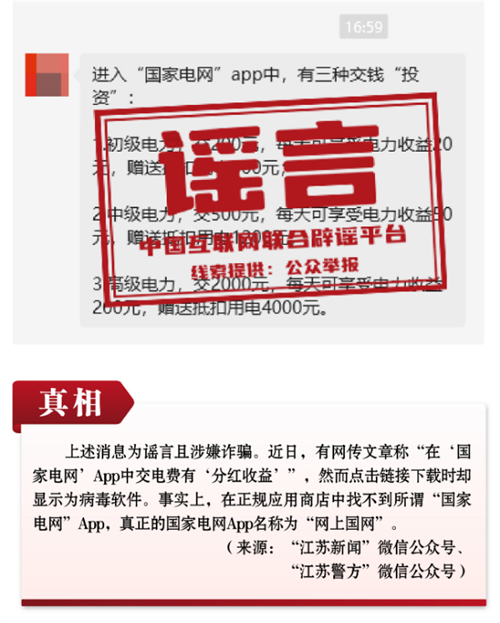 謠言1:在“國家電網(wǎng)”App中交電費(fèi)有分紅收益?