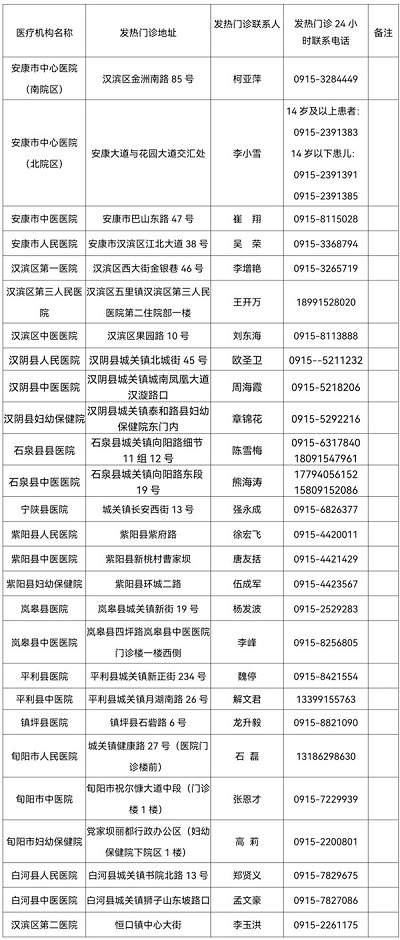 我市二級(jí)以上醫(yī)療機(jī)構(gòu)發(fā)熱門診公開信息