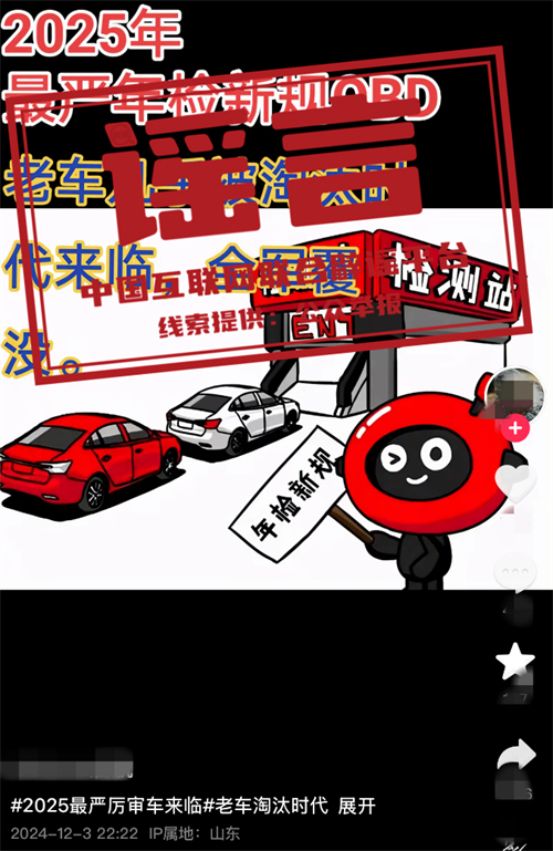 真相:近日,多個(gè)自媒體賬號(hào)發(fā)布消息,宣稱“史上最嚴(yán)車檢來了”“車檢年限變化”“燃油車年檢增加OBD檢測”等。中央廣電總臺(tái)中國之聲記者多方求證了解到,上述說法均為不實(shí)消息,目前各地車檢并沒有新變化。